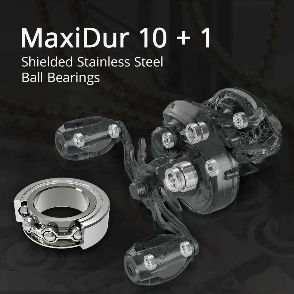 Surpassing standard reels, it boasts the fastest retrieve and superior casting control, offering greater smoothness, increased drag power, and advanced bearing durability.